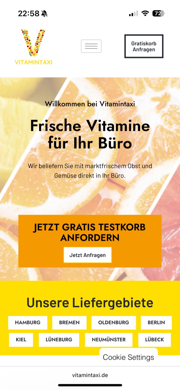 Die alte Website war veraltet und hat keine Kunden konvertiert. Wir haben Vitamintaxi komplett neu aufgebaut — klarer, moderner, conversion-optimiert. Das Ergebnis spricht für sich.